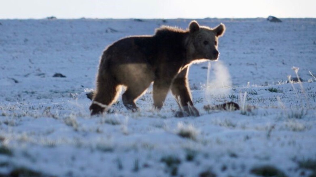 Ardahan Damal-Posof-Türkgözü yolu üzerindeki 2550 rakımlı Ilgar Dağı geçidinde ortaya çıkan boz ayı, Karip Cankan tarafından görüntülendi.