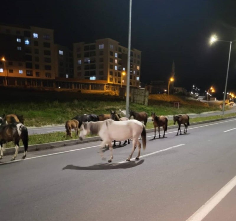 Ardahan’da anayola sık sık çıkan başıboş atlar, trafik kazalarına davetiye çıkartıyor. Başıboş dolaşan atların karayolunda ilerlediği ve sürücülerin çarpmamak için hızlarını düşürdüğü anlar, cep telefonu kamerasına yansıdı.