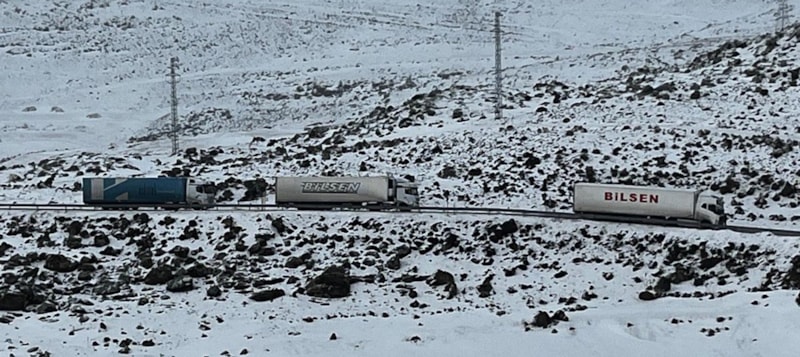 Çıldır Aktaş Sınır Kapısı'na giden çok sayıda tır, Akçakale köyü mevkiindeki rampada buzlanma nedeniyle yolda kaldı. Şoförler, uzun süre araçlarını bulundukları yerden çıkarmaya çalıştı.