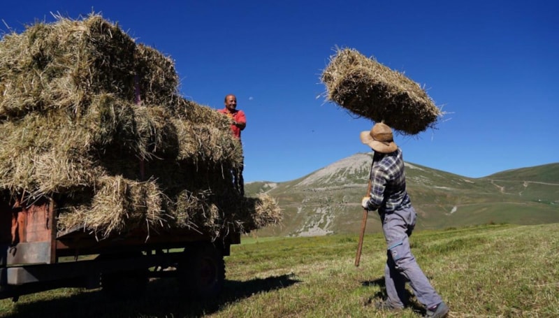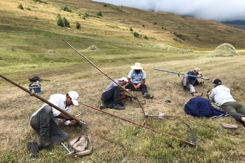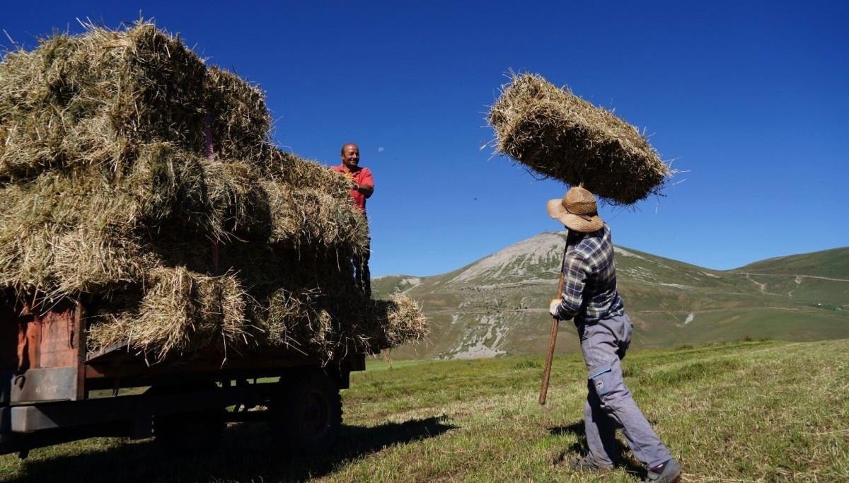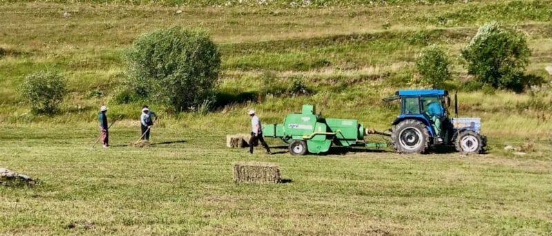 Düzlük alanlarda bulunan meralarını traktörle biçen çiftçiler, engebeli ve dağlık alanlardaki tarlalarının otlarını biçmek için farklı bir çalışma yapıyor.