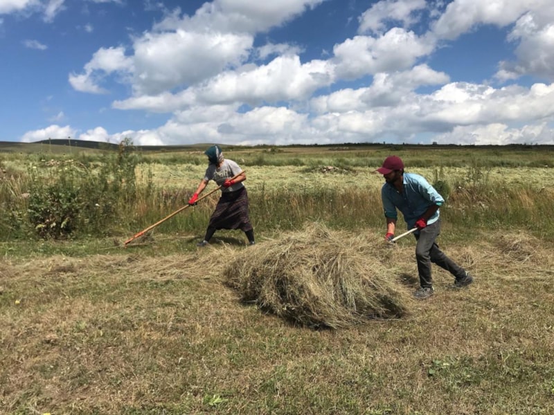Ardahan'ın Damal ilçesine bağlı Seyitören köyündeki köylüler kol ve bilek gücüyle kavurucu sıcaklara rağmen gün boyu ot biçerek hayvanlarının kışlık ot ihtiyacını karşılamaya çalışıyor.