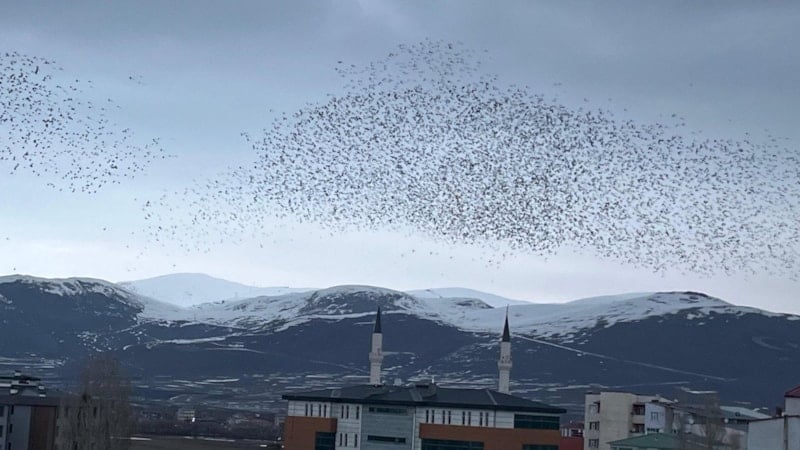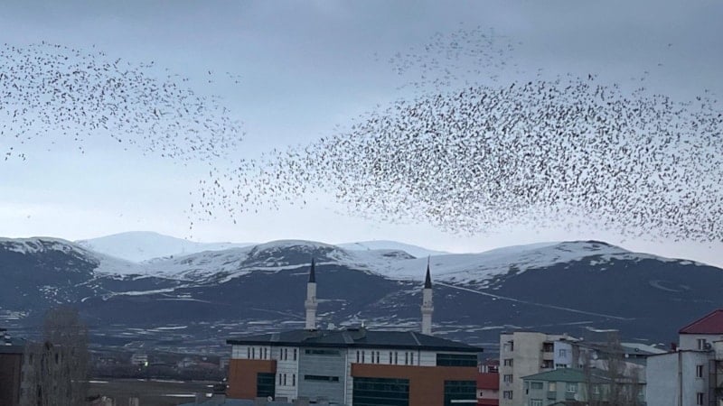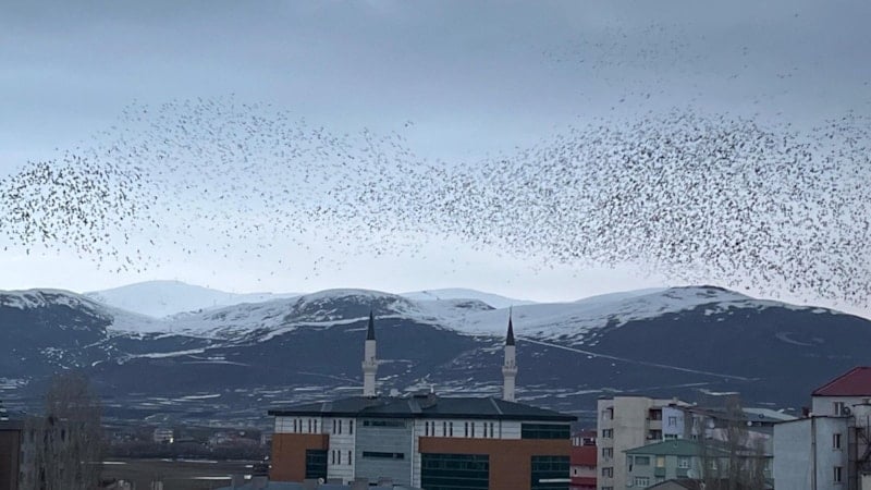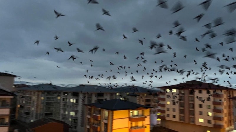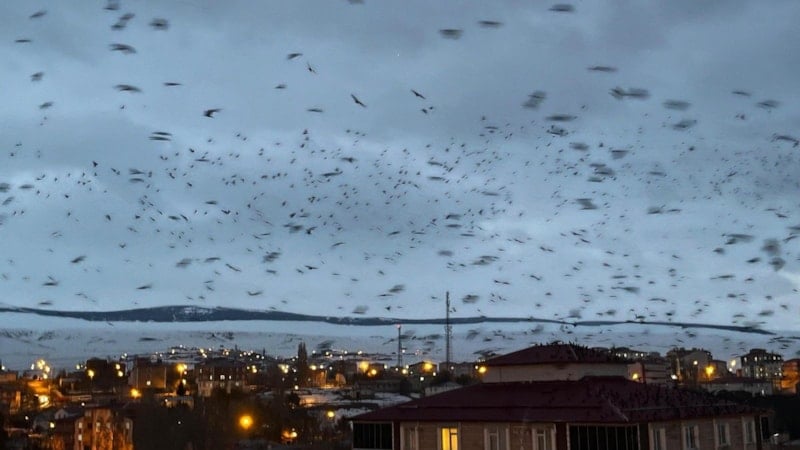 Dün akşam saatlerinde kargalar, sürüler halinde dakikalar boyunca gökyüzünde daireler çizerek uçtu.