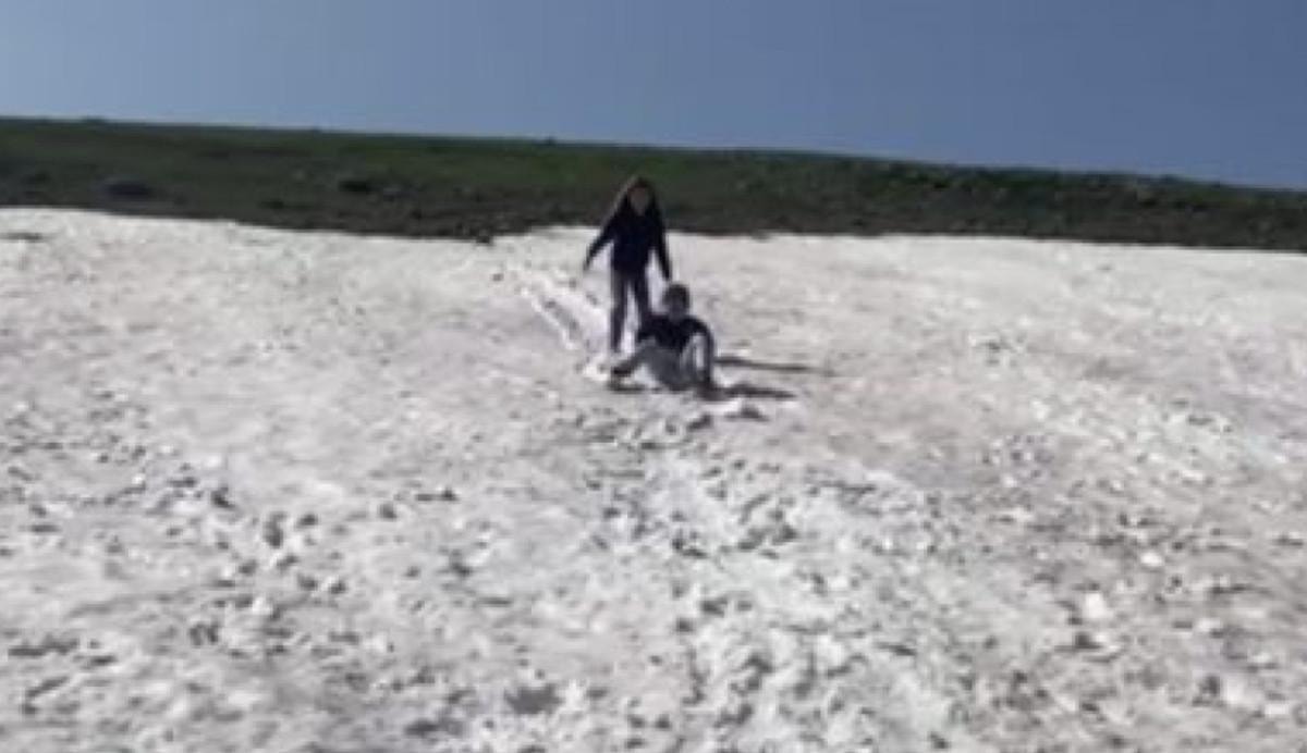 Burası Ardahan merkeze bağlı 2100 rakımlı Çataldere Köyü Yaylası. Yaz ayında çocuklar kar keyfini yaşıyor. Bu onlar için çok güzel ve heyecanlı.'' dedi.