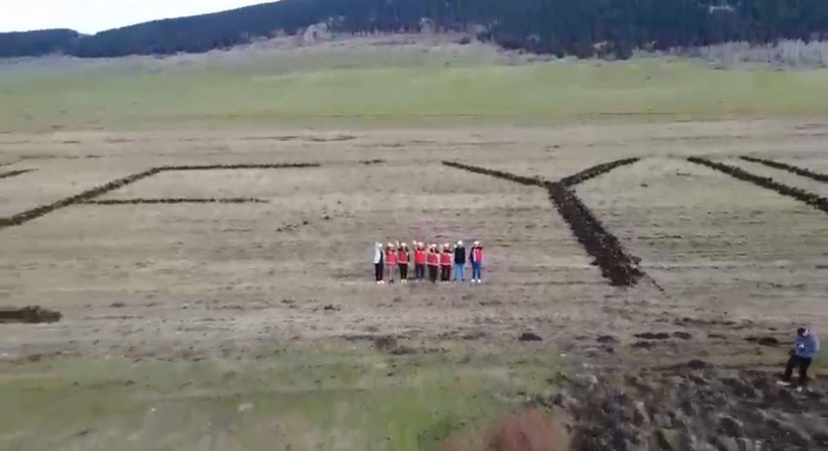 Ardahan’da merkeze bağlı Yalnızçam köyünde bekar olan Fatih Doğruyol, aile yılına destek vermek amacıyla ekime hazırladığı tarlasına traktörüyle "Aile Yılı" yazdı.