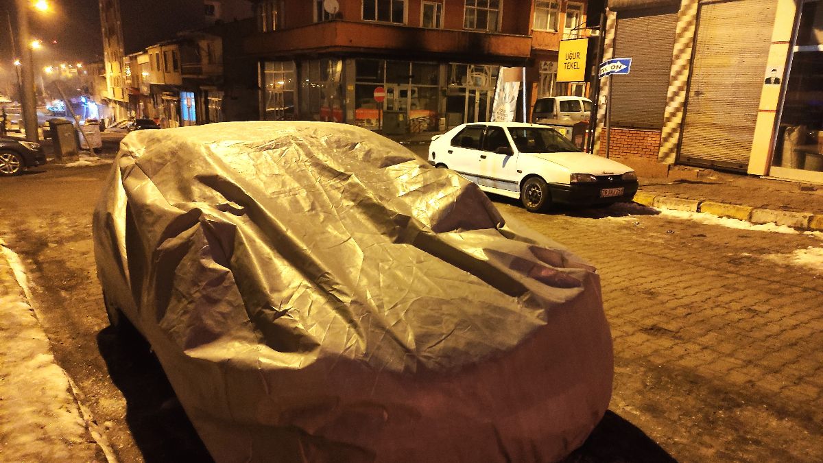 Kentte soğuk havanın araçlara zarar vermemesi için sürücüler, özellikle geceleri otomobillerinin üzerini branda ve battaniyelerle örtüyor.