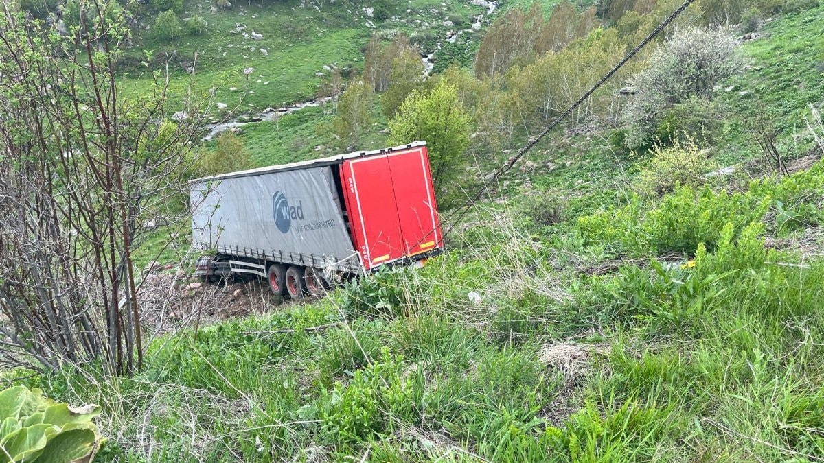 Ardahan-Şavşat kara yolu Sahara Geçidi Değirmenli köyü Yayla mevkiinde meydana gelen kazada sürücüsünün direksiyon hakimiyetini kaybetmesi sonucu virajı alamayan tır, şarampole yuvarlandı.