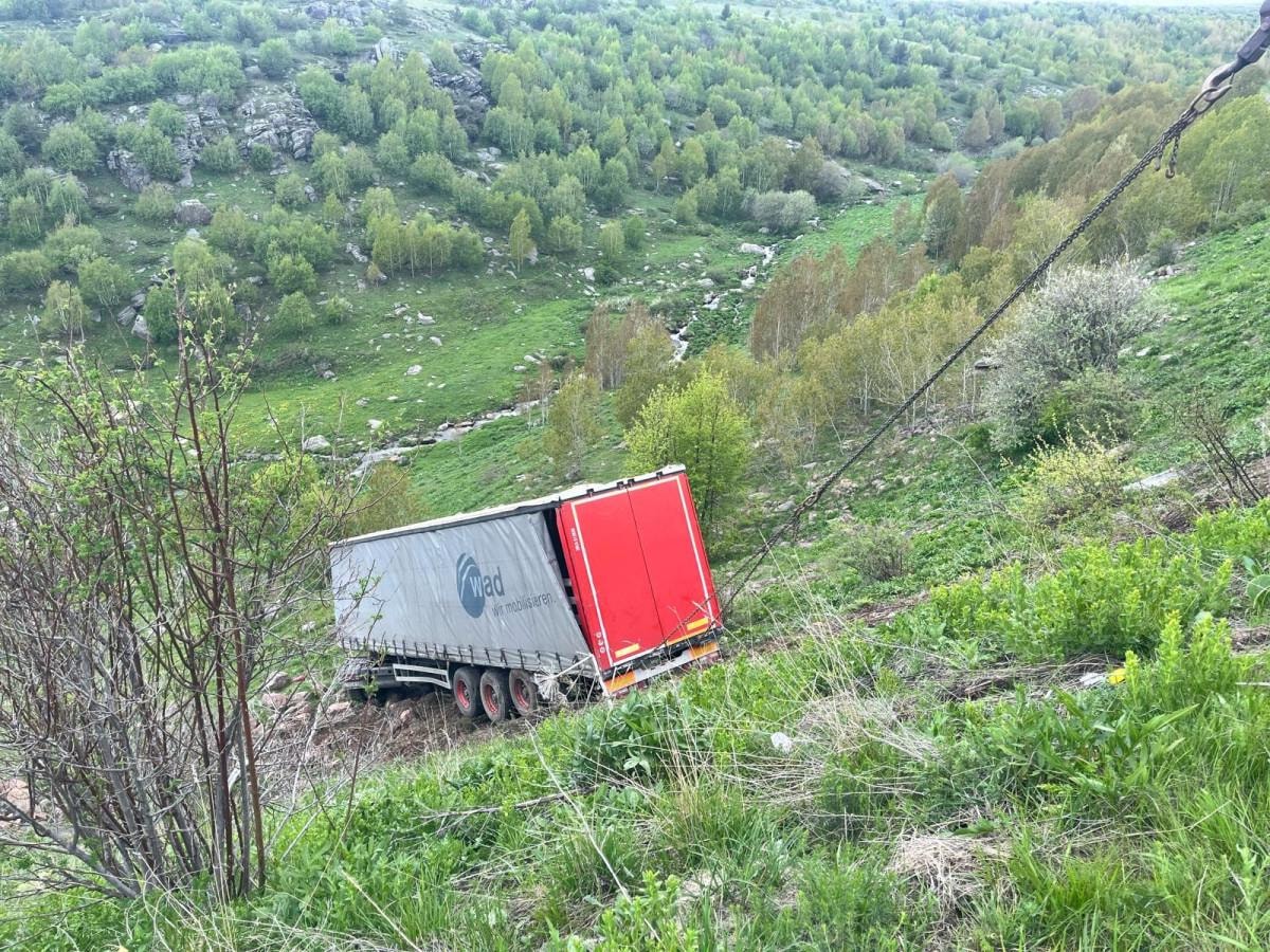 Şarampole devrilen tır ile dorsesi yapılan çalışmayla kaldırılarak kurtarıldı, daha sonra yol da yeniden trafiğe açıldı.