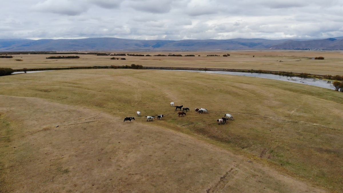 Görüntülerde, metrelerce meralarda özgürce dolaşan, Kura Nehri’nin etrafında özgürce karınlarını doyuran renkleriyle görenleri büyüleyen yılkı atları yer alıyor.