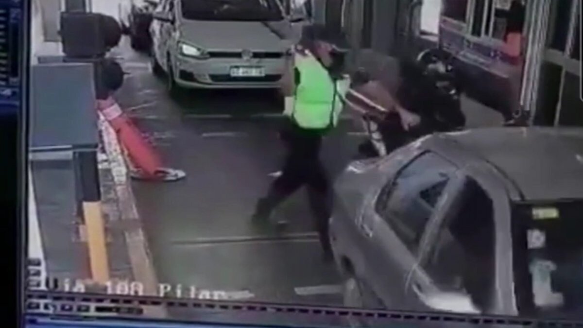 Motosikletli sürücü, geçiş ücreti ödememek için bir aracın geçmesini fırsat bildi ve aradan kaynamak istedi.