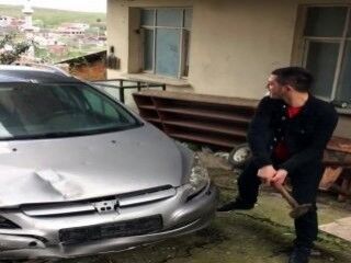 Arkadaşına kızdı, aracını çekiçle böyle parçaladı VİDEO