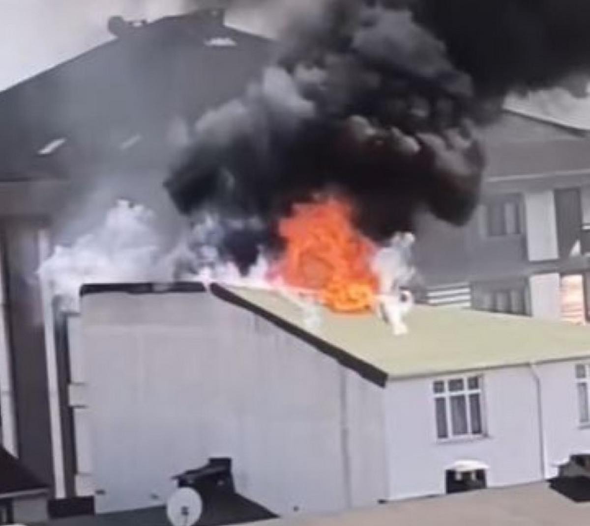 Polis ekipleri çevrede güvenlik önlemi alırken, itfaiye yangını kontrol altına aldı. Soğutma çalışmaları havadan da görüntülendi. Yangında can kaybı veya yaralanma yaşanmazken, binanın çatısında maddi hasar oluştu.