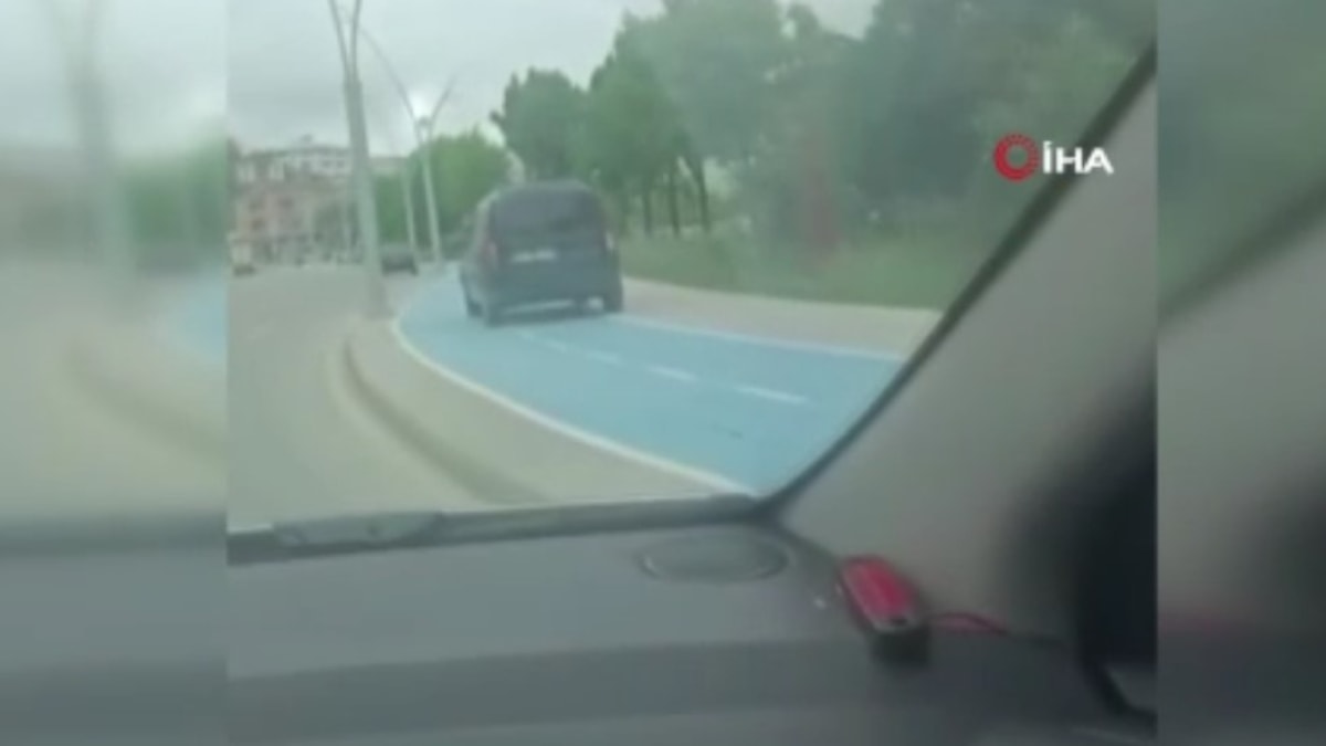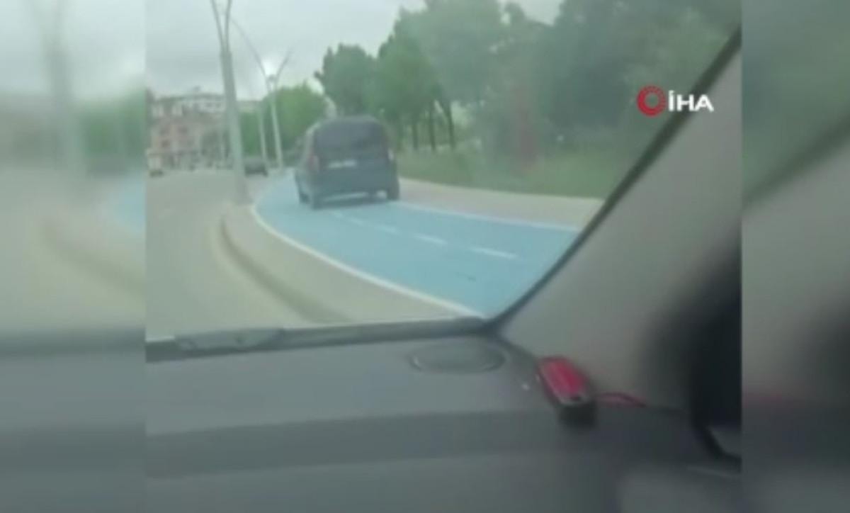 İstanbul'un Arnavutköy ilçesinde yaya ve bisiklet yolu üzerinde bir şahsın aracıyla seyir halinde ilerlediği görüntüleri, vatandaş tarafından cep telefonu kamerasıyla kaydedildi.