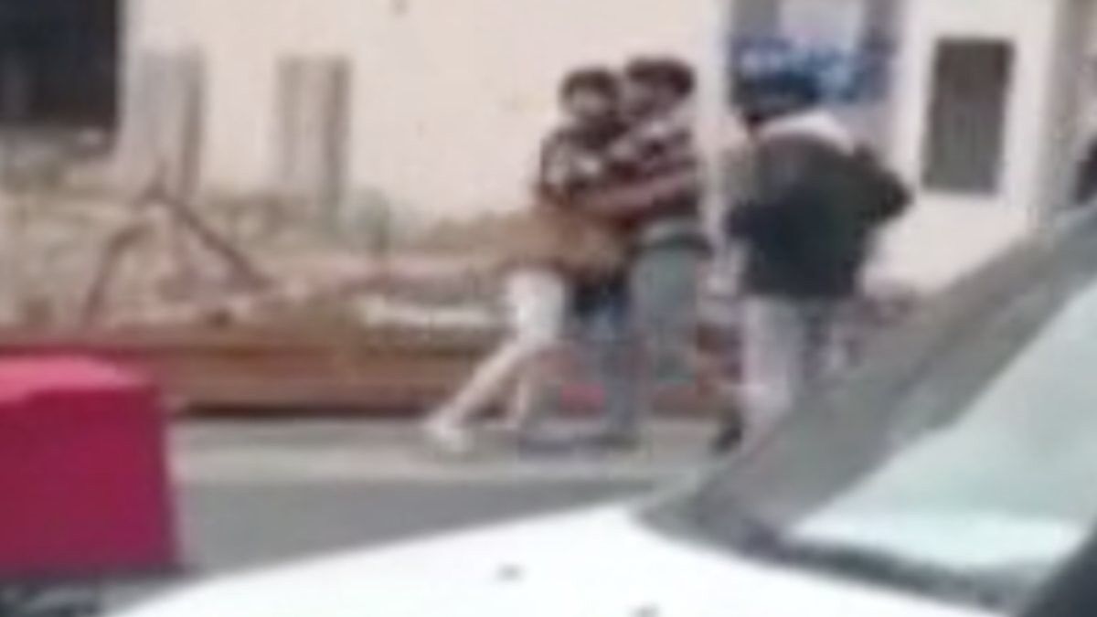 Birbirine tekme ve yumruklarla saldıran kişiler, başka bir vatandaşın cep telefonu kamerası ile görüntülendi.