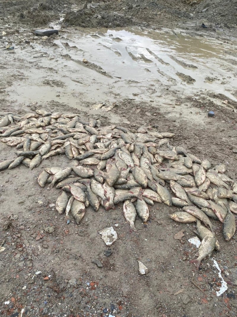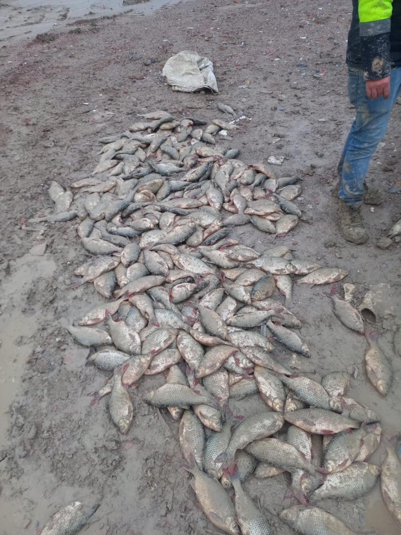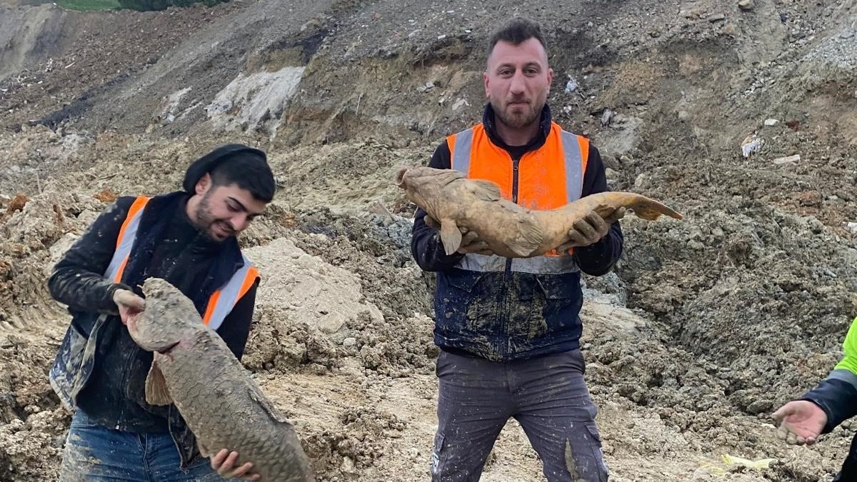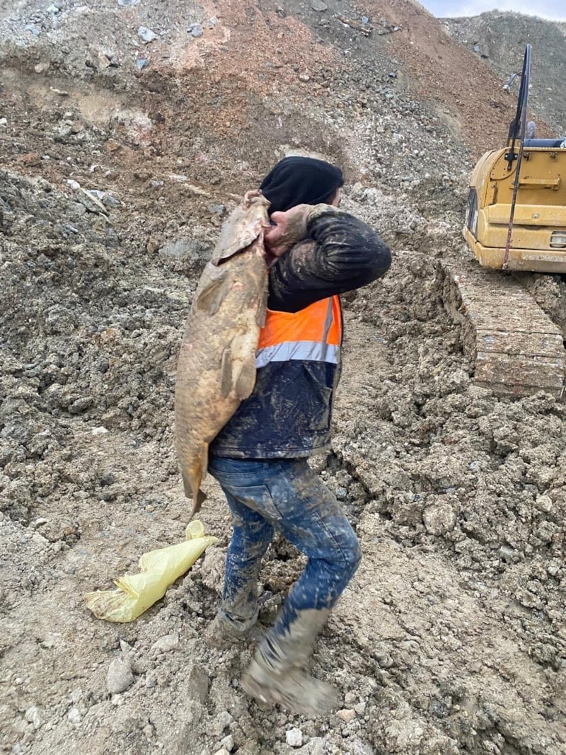 İşçiler tarafından kaydedilen görüntülerde, balıkların balçık içinde çırpındığı ve su arayışı içinde oldukları görüldü.