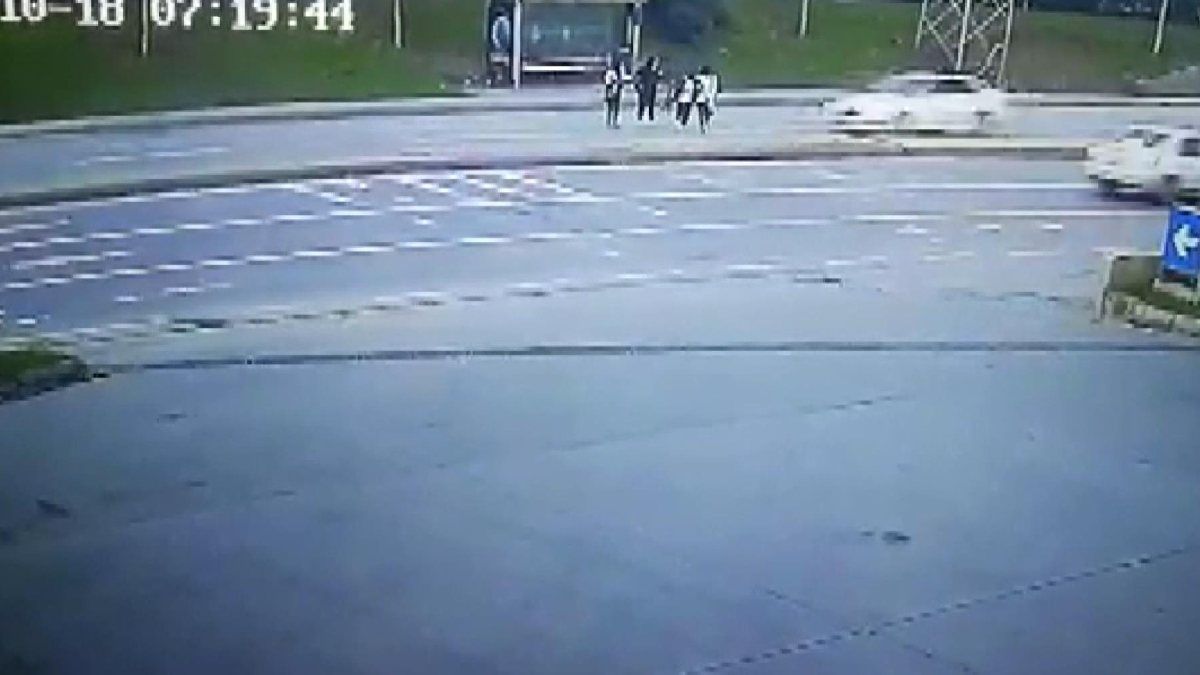 Arnavutköy Habipler yolunda meydana gelen olayda, otobüsten inen 4 genç kız, yolun karşısına geçmeye çalışırken son anda otomobilin geldiğini fark etti.