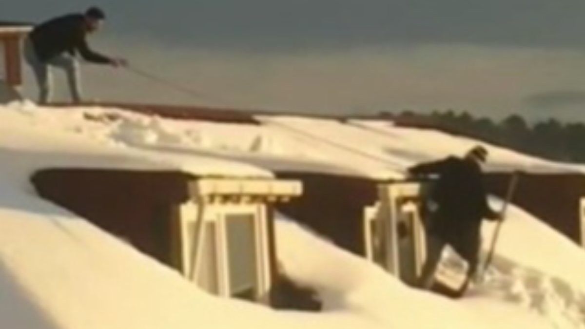 Kişilerden biri ipe bağlandı, arkadaşı ise ipin diğer ucunu sıkıca tuttu. İpin tehlikeye karşı direneceğini düşünen kişi, elindeki kürekle karları çatından aşağıya attı.