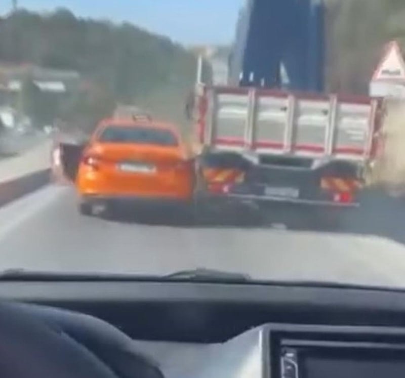 Kazanın yaşandığı an, arkadan gelen bir sürücünün cep telefonu kamerasına saniye saniye yansıdı. Görüntülerde, kamyonetin taksiye yandan çarpması ve öfkelenen taksi şoförünün araçtan inerek kamyonetin arkasından koştuğu anlar yer aldı.