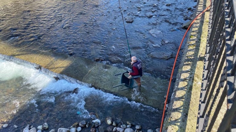 Derenin ortasına koyduğu sandalyeye oturarak suyun içinde balık avlayan Yazıcı'nın bu görüntüleri, sosyal medyada gündem oldu.