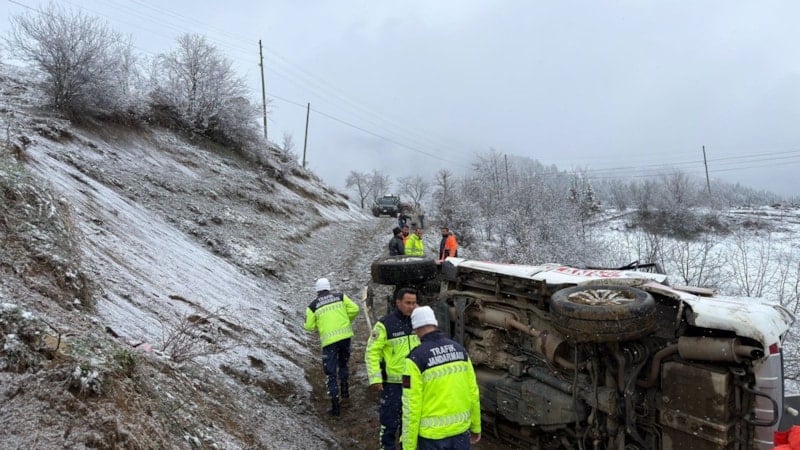 Bölgede etkili olan kar yağışı ve buzlanmanın kazaya neden olduğu değerlendirilirken yetkililer, sürücülere dikkatli olmaları konusunda uyarılarda bulundu.