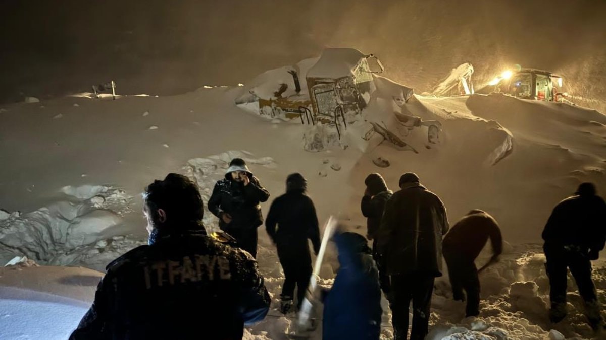 İş makinası ve bölgede bulunan kamyonet kar altında kaldı. Kamyonet içerisinde bulunan 2 kişi kendi imkanlarıyla kurtulurken kepçe operatörü kar altında kayboldu.