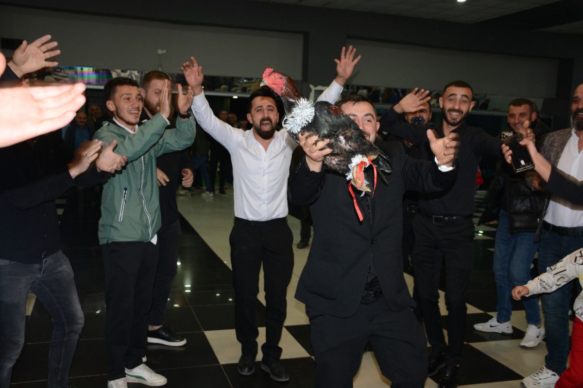 Damat Badur kendisine hediye edilen horozla dans ederken, davetliler bu anları alkışlarla karşıladı.