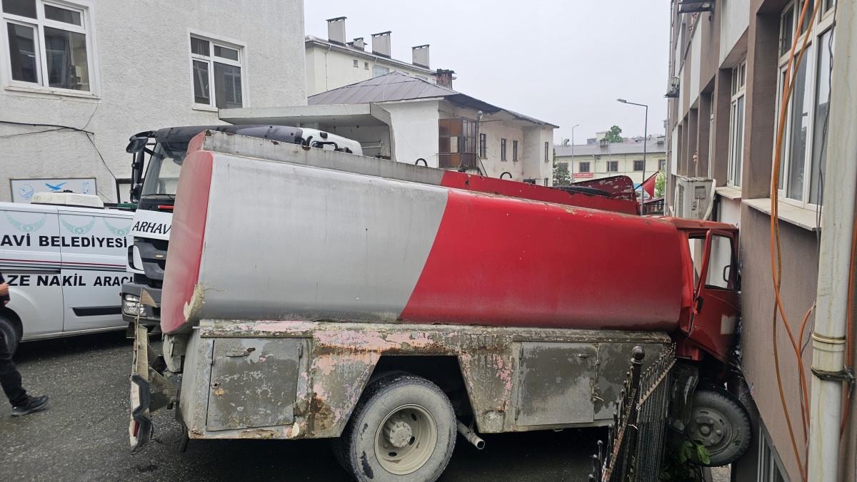 Artvin’in Arhavi ilçesinde seyreden mazot yüklü tankerin sürücüsü, Musazade Mahallesi'nde yokuş aşağı ilerlerken bir anda frenin boşalması sonucu direksiyon hakimiyetini kaybetti.