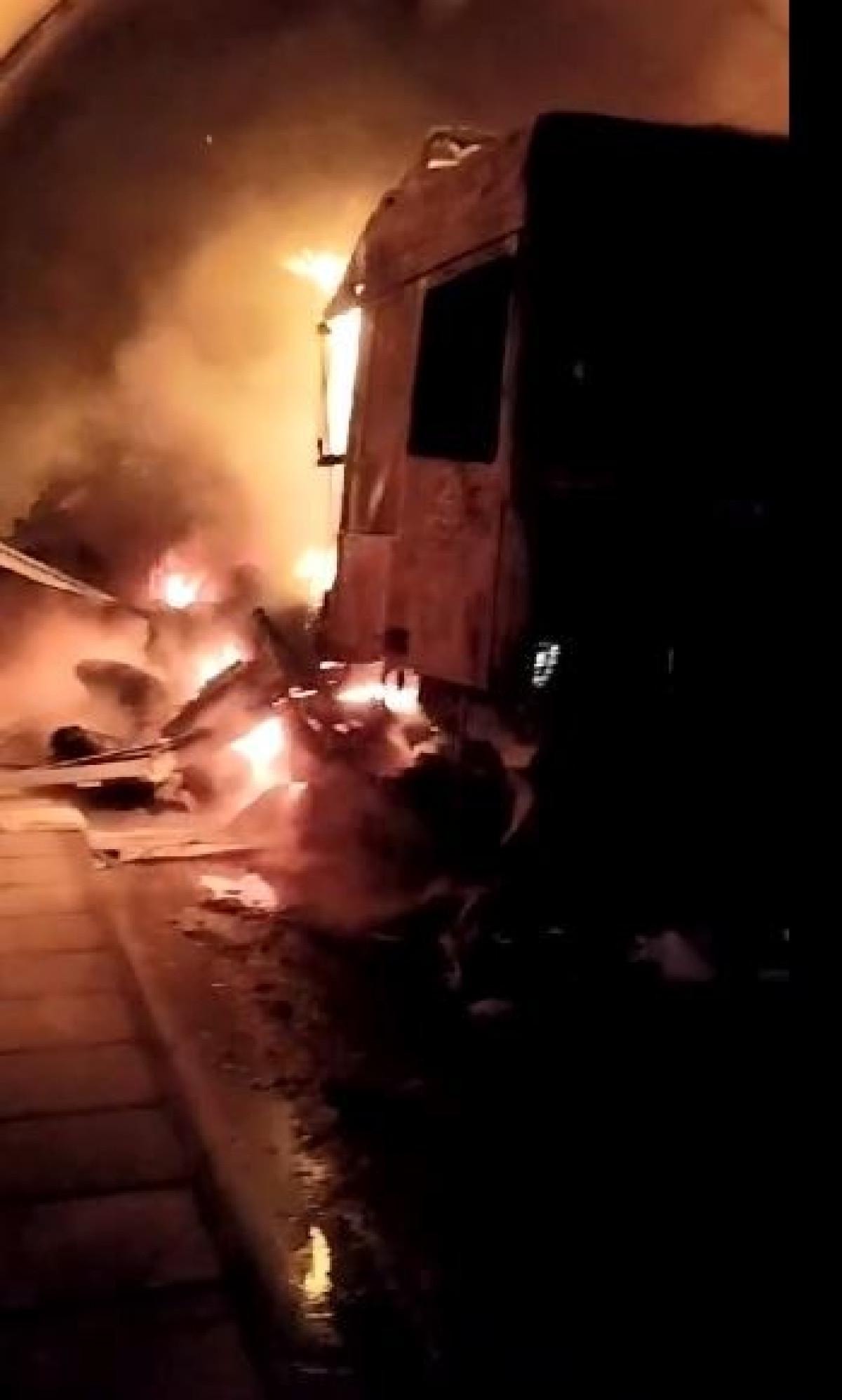 Tırın motor kısmında başlayan yangın kısa sürede büyüyerek tırı tamamen sardı.