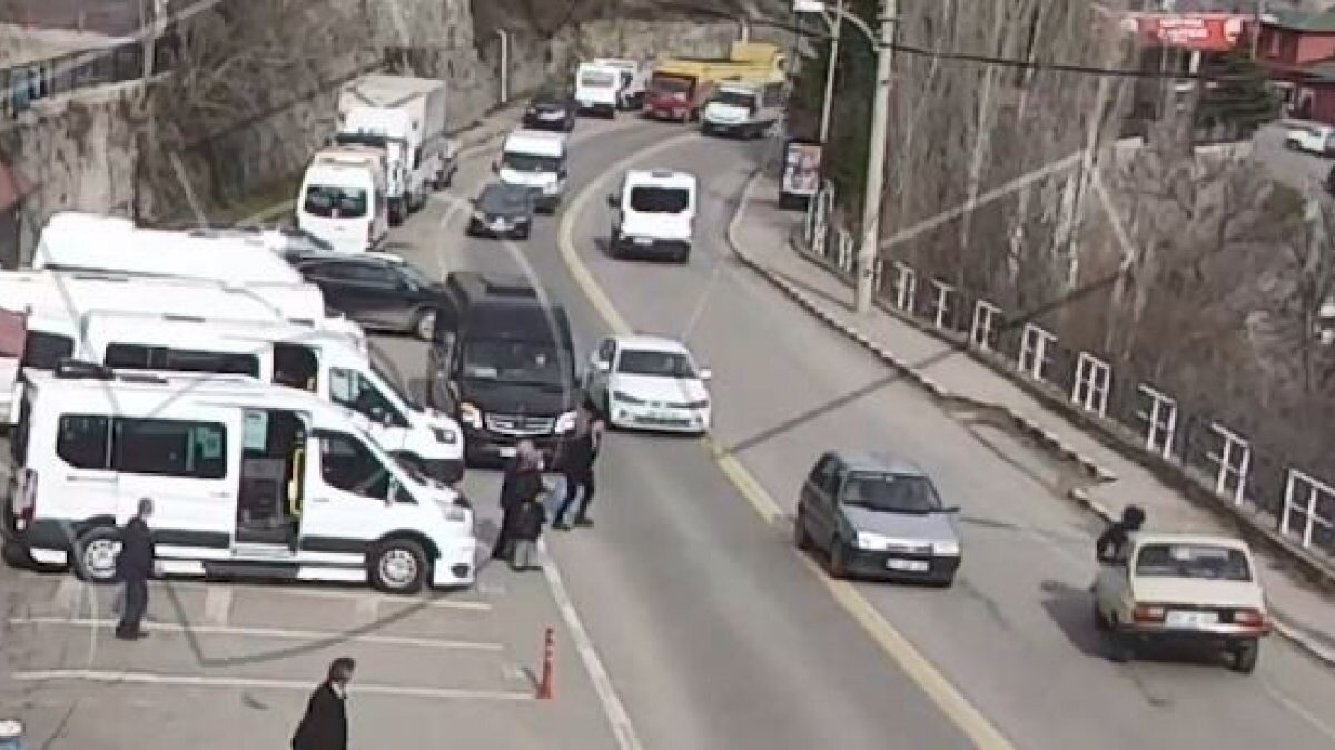 Sekerek yolun kenarına gecen yayaya, 2 saniye içinde iki aracın çarpığı görüntüler MOBESE kamerasına saniye saniye yansıdı.