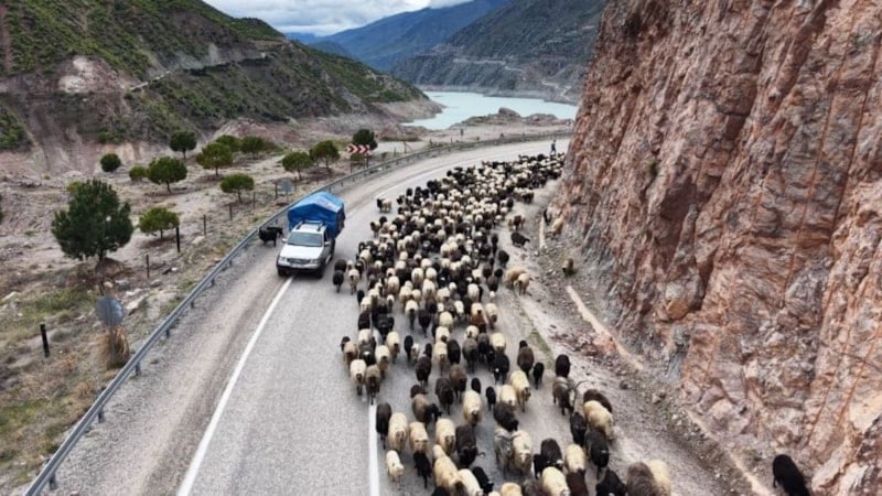 Yaylalara ulaşmak için kilometrelerce yol kateden sürüler, zaman zaman karayollarında gözleniyor.