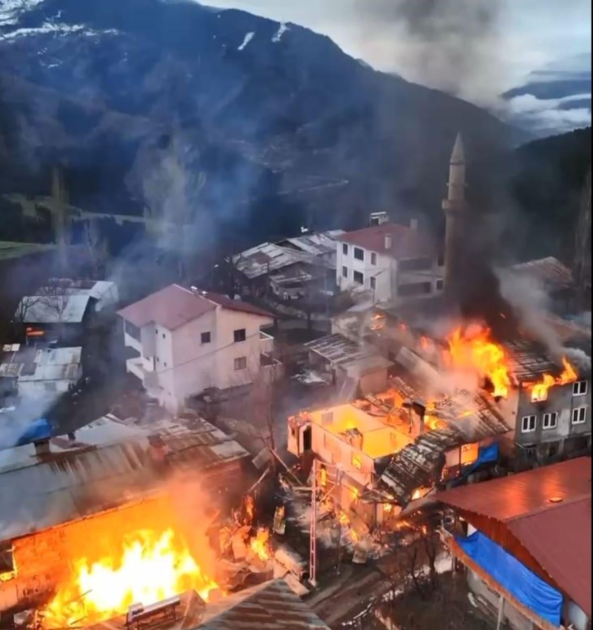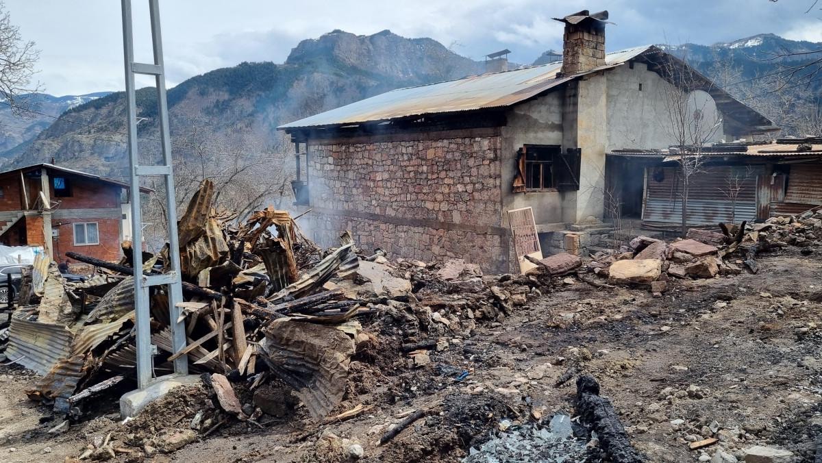 Artvin'in Şavşat ilçesinde Dutlu köyünde Şener, Şinasi ve Mehmet Özcan kardeşlere ait 2 katlı ahşap evde, dün sabah saatlerinde, bilinmeyen nedenle yangın çıktı.