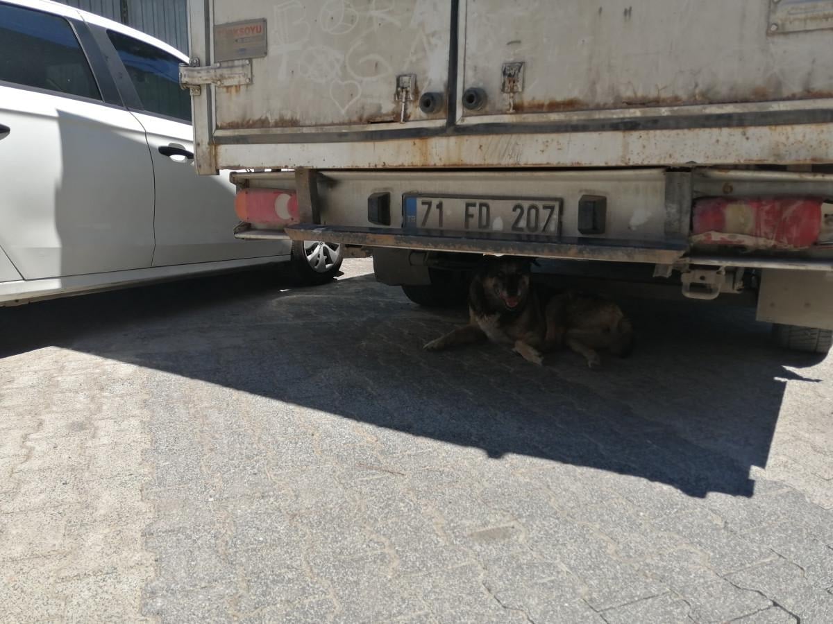 Yılmaz'ın oğlu birbirlerine giren köpekleri ayırmak için hem kendi köpeğine hem de sokak köpeklerine motosiklet kaskı ile vurdu.