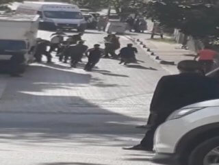 Kavga çevredeki bir vatandaşın cep telefonu kamerasına, saniye saniye yansıdı. Görüntülerde, elinde iki grup birbirine saldırıyor.