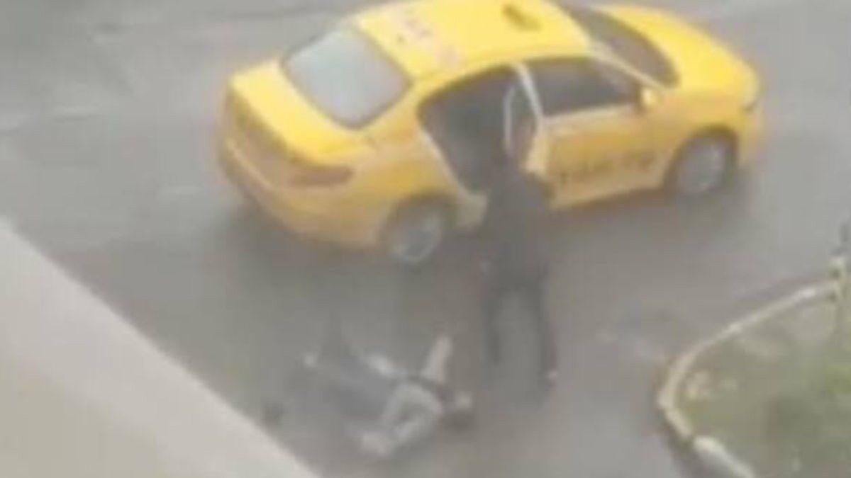 DHA'nın haberine göre; bunun üzerine taksi şoförü, araçtan inen kadın yolcunun yanına geldi ve kadını kolundan tutarak kafasını kapıya vurdu, ardından kadını yere fırlattı.