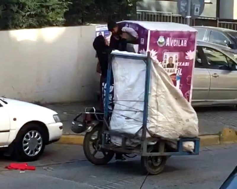 İstanbul Avcılar'da, ikinci el kıyafet ve ayakkabıların bırakıldığı giysi kumbaralarından hırsızlık yapıldığı anlar görüntülendi.