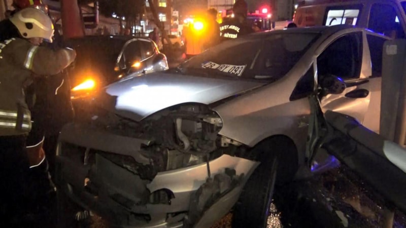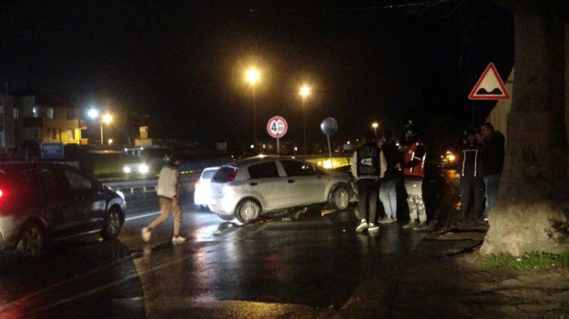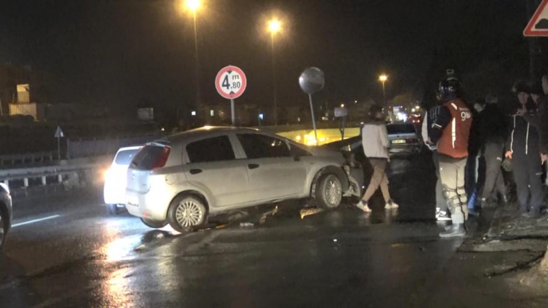 Direksiyon hakimiyetini kaybeden otomobil sürücüsü önce önündeki otomobile ardından bariyerlere çarptı. Kazada 2 kişi yaralandı.