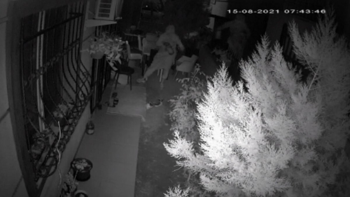 Hırsızlardan biri evin bahçesinde dolanırken, diğeri de sokakta bekleyerek etrafı gözetledi.