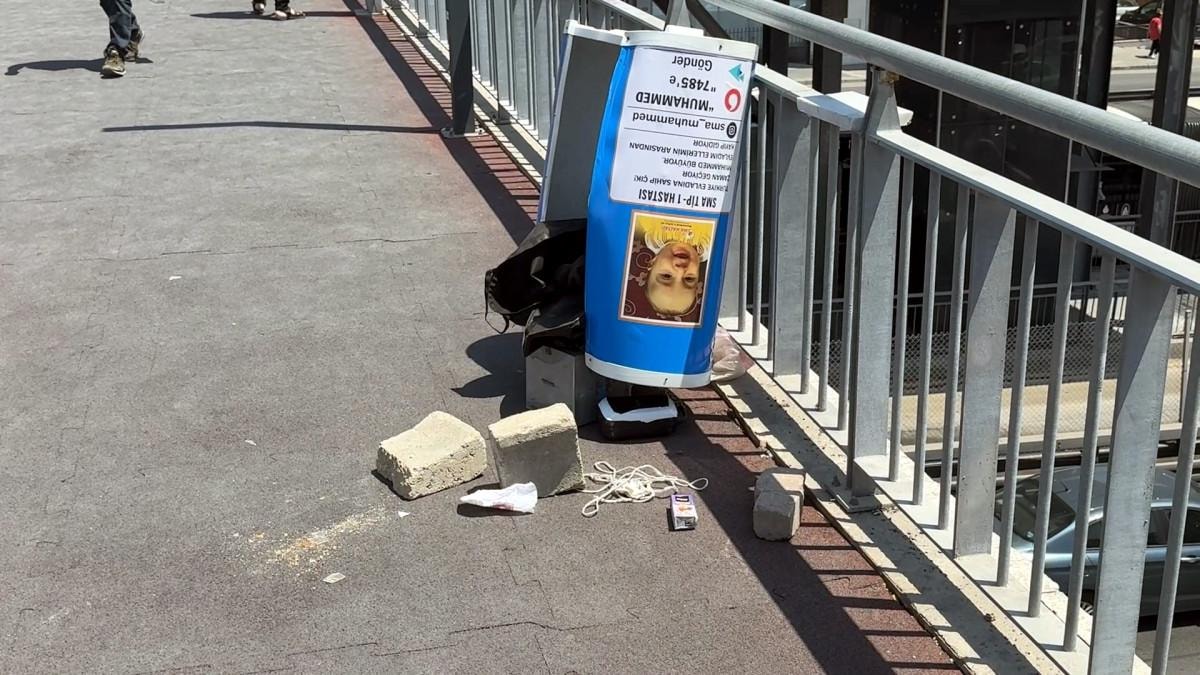 Avcılar'daki Şükrübey Metrobüs üst geçidine konulan bağış kumbarası, çarşamba günü kimliği belirsiz bir kişi tarafından kırıldı ve içindeki paralar alındı.