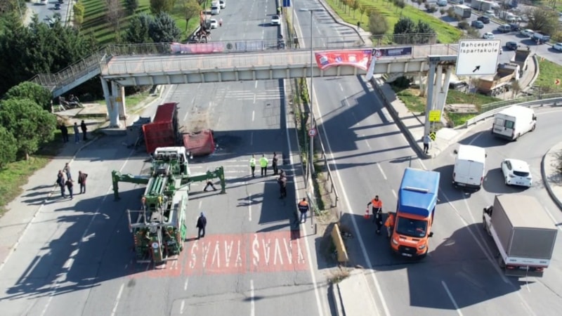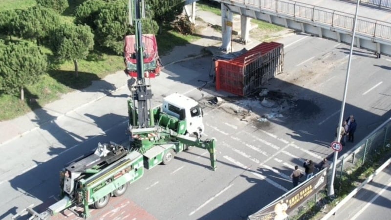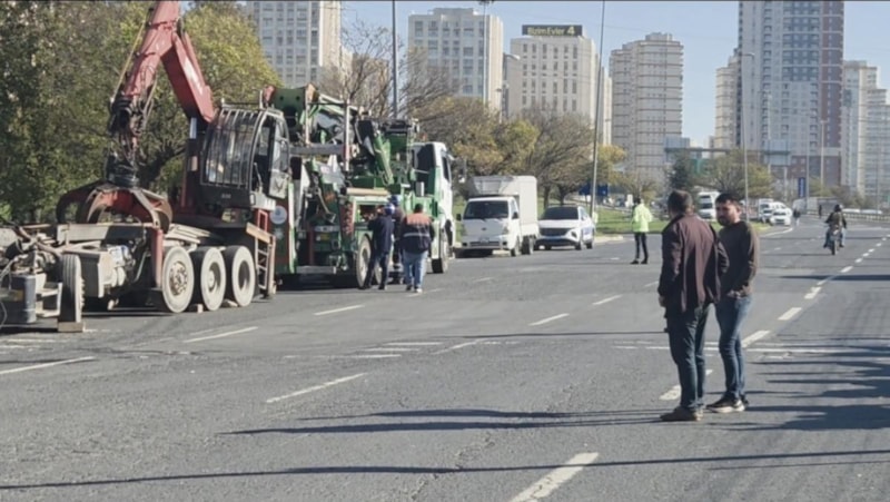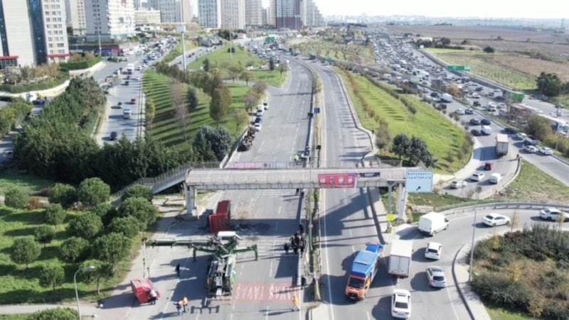 Riskli durum üzerine ekipler yolu tamamen kapatarak üst geçidi kaldırma çalışmalarına başladı. Trafiğin kapalı olduğunu gören bazı sürücüler görevlilerle tartışırken, bazıları tepki gösterdi. Yeşil alandan geçmeye çalışan sürücüler ise polis tarafından uyarıldı.