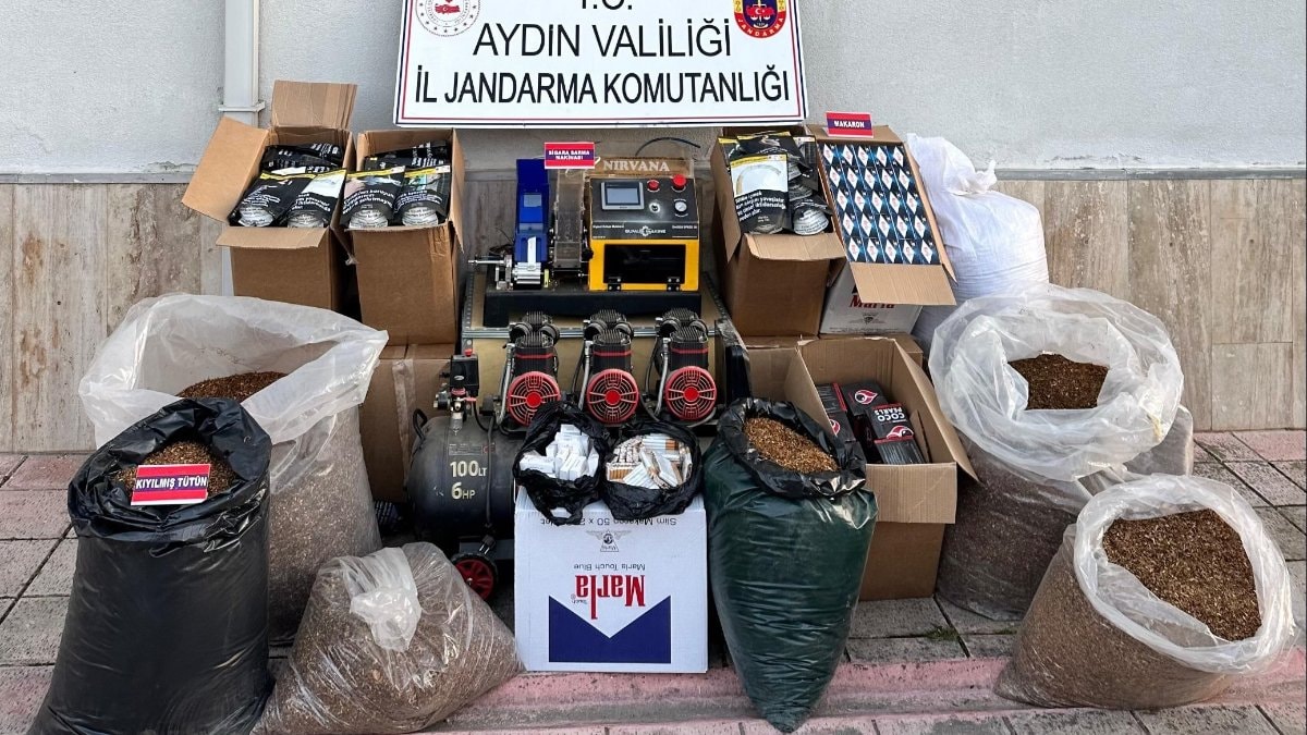 Çarşı Mahallesi’nde sigara sarımı yapan şüphelinin yapılan iş yeri aramasında 20 bin adet boş makaron, 12 bin adet içi tütün doldurulmuş makaron, 200 kilogram açık tütün, 500 paket 100 gramlık bandrollü tütün, 50 paket nargile tütünü, 1 adet kompresörlü sigara sarma makinası, 1 adet hava kompresörü ele geçirildi.