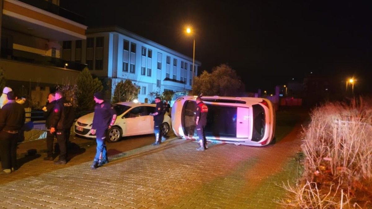 Otomobil devrilirken sürücü çevredeki vatandaşların yardımıyla araçtan çıktı.