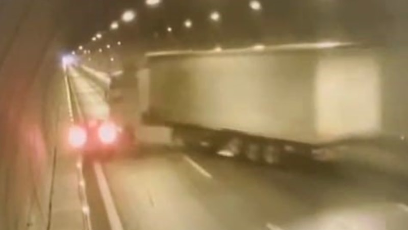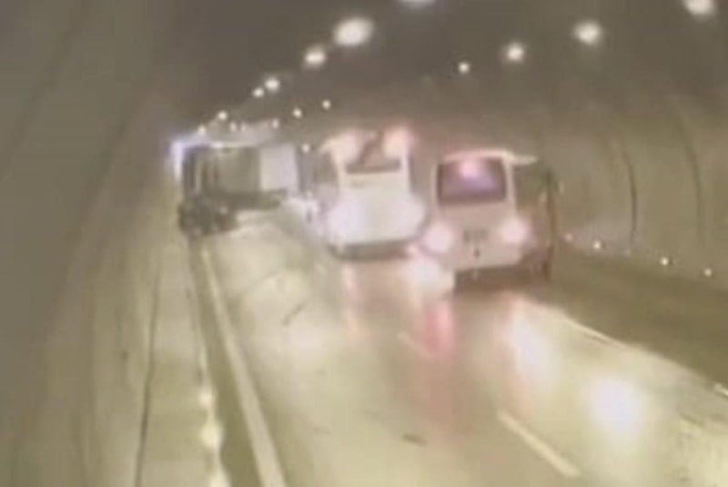 Tır ile otomobilin çarpıştığı kazaya diğer araçların da karışmasıyla zincirleme kaza meydana geldi. Tüneldeki güvenlik kamerasınca kaydedilen kazada 2 kişi yaralı olarak kurtuldu.