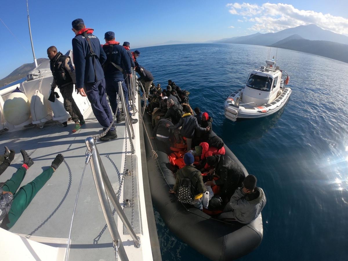 Yunanistan unsurlarınca Türk kara sularına geri itilen lastik bot içerisindeki toplamda 59 düzensiz göçmen kurtarıldı.