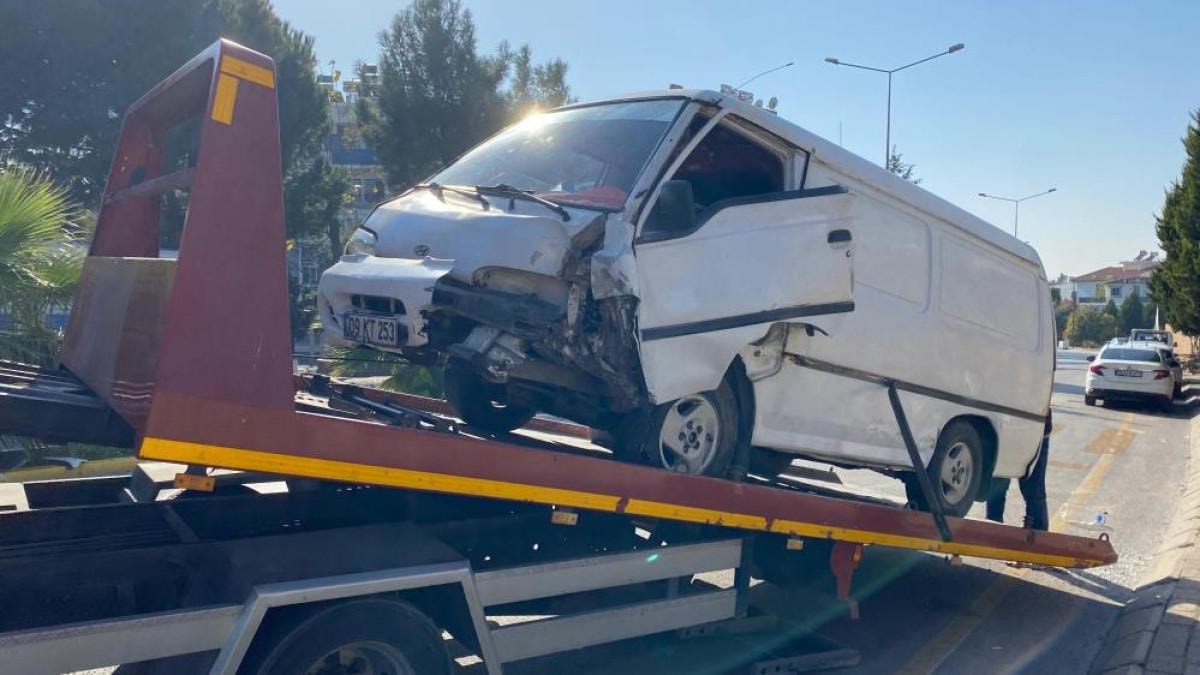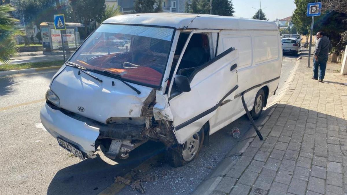 Aydın'ın Efeler ilçesi Mimar Sinan Mahallesi Mimar Sinan Bulvarı üzerinde öğle saatlerinde 09 KT 253 plakalı panelvan, sürücüsünün direksiyon hakimiyetini kaybetmesi ile refüjdeki ağaçlara çarpıp takla attı.