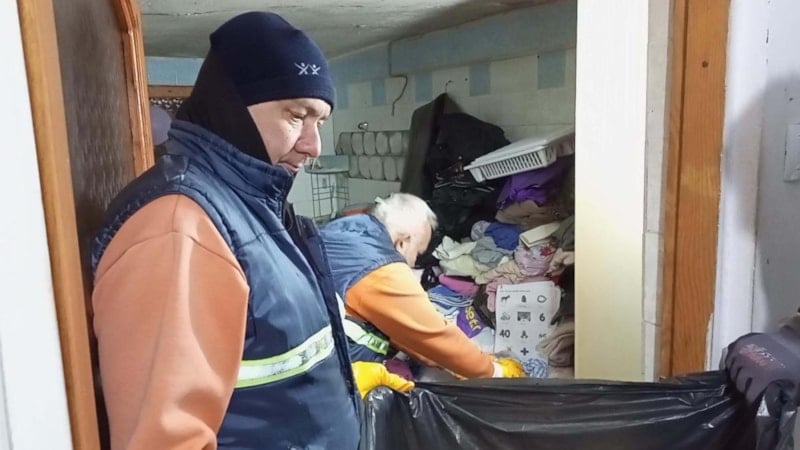 Eve gelen belediye ekipleri, içeri girdiklerinde çöp yığınıyla karşılaştı.