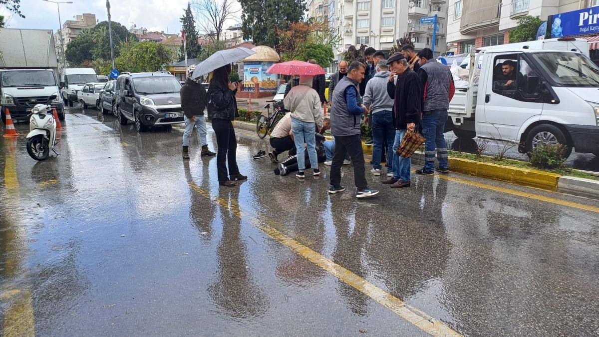 Yaralanan bisiklet sürücüsü genç, şok geçirirken gencin yardımına çevredeki vatandaşlar koştu.