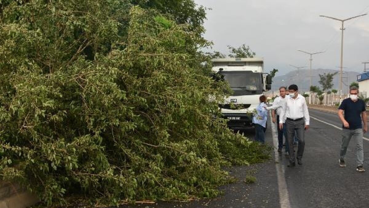 Aydın'ın Nazilli ilçesinde fırtına etkili oldu. İlçe merkezi başta olmak üzere birçok mahallede ağaçlar devrildi.