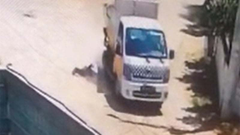 Olaya ilişkin bir iş yerinin güvenlik kamerasınca kaydedilen görüntülerde Dok'un kamyonetten düştüğü anlar yer aldı.