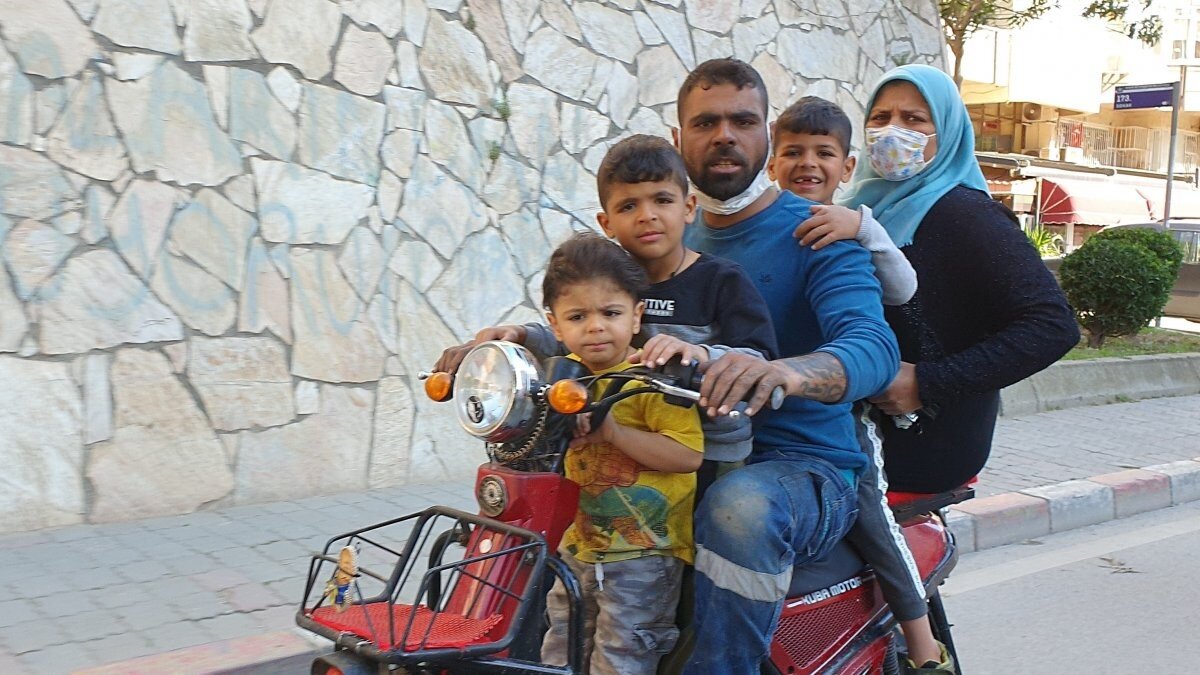 Aydın'ın Nazilli ilçesinde, 3'ü çocuk 2'si yetişkin olan 5 kişilik ailenin tehlikeli bisiklet yolculuğu kameralara yansıdı.