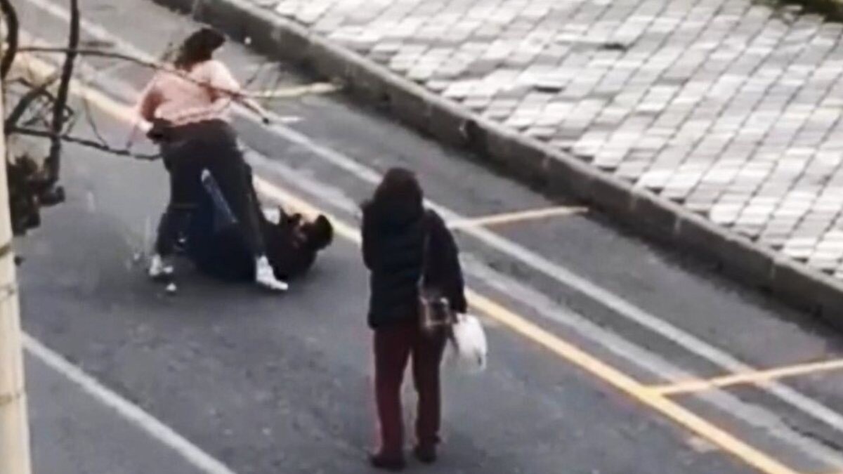 Yanında bulunan başka bir kadın, saldırgan kadını engellemeye çalışsa da başarılı olamadı. Saldırgan davranışlarda bulunan kadının, önceki saatlerde de yoldan geçen iki motorlu servis çalışanına sataştığı öğrenildi.