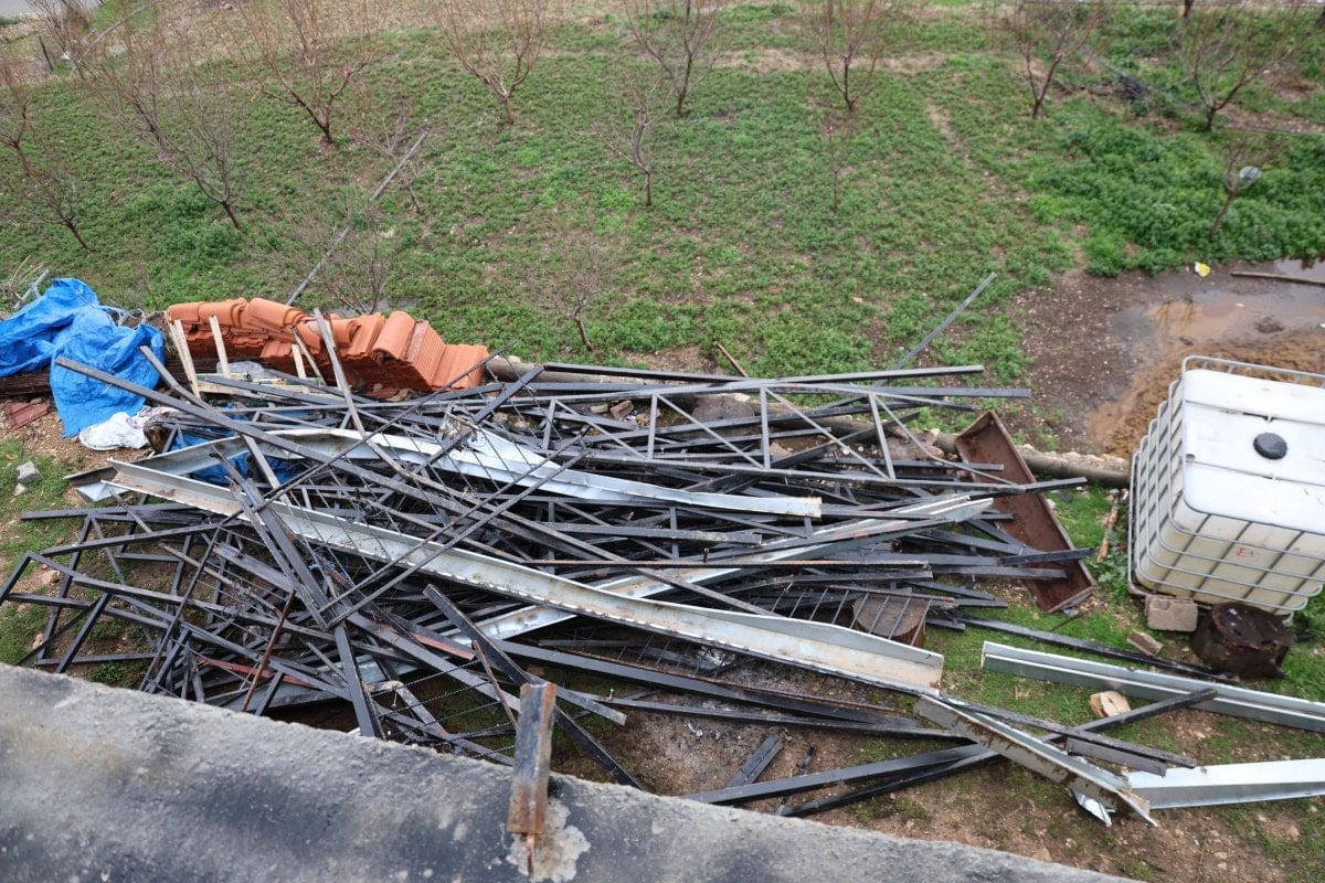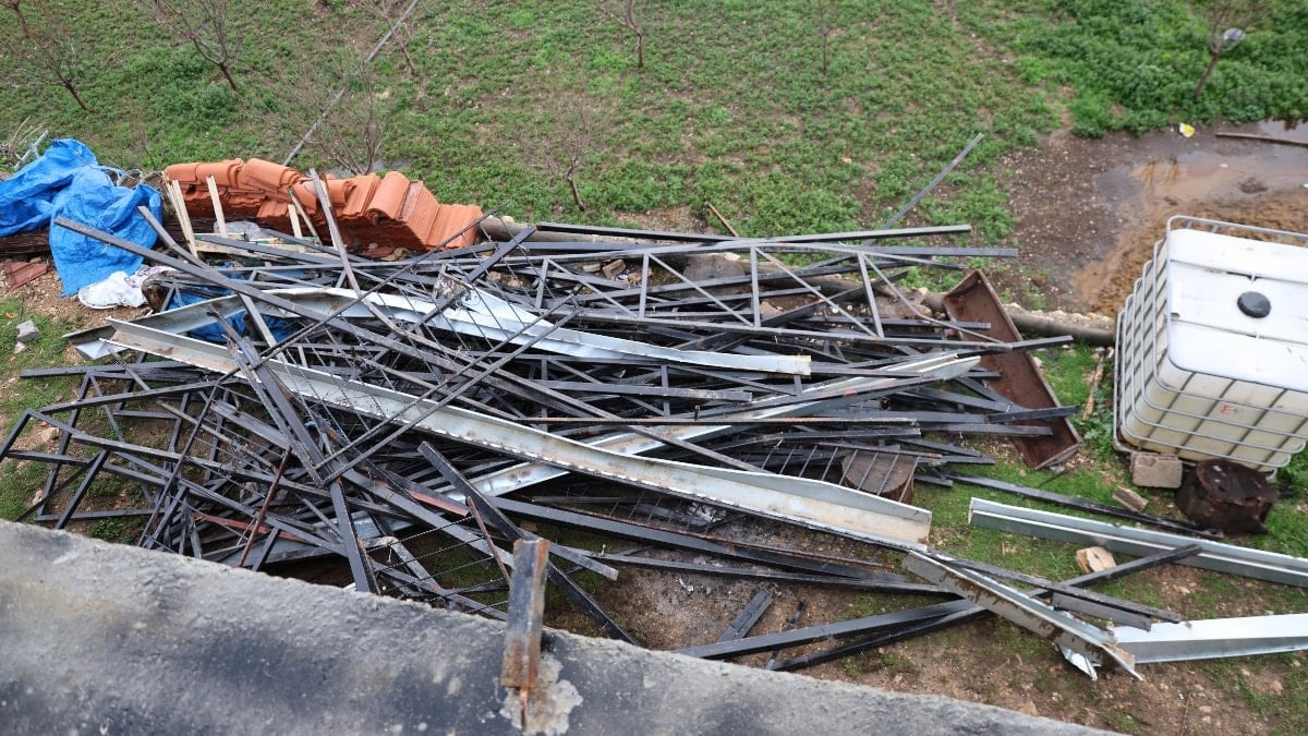 - Köylüler, savrulan çatı malzemelerini toplarken, bölgedeki hasar onarılmaya çalışılıyor.